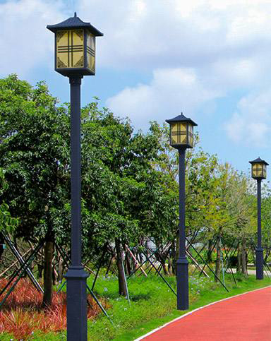 太阳能工业园区庭院灯以太阳辐射能为能源,白天利用太阳能电池板给蓄电池充电,晚上蓄电池给庭院灯光源供电使用,无需复杂昂贵的管线铺设,可任意调整灯具的布局,安全节能无污染,充电及开/关过程采用智能控制,光控自动开关,无需人工操作,工作稳定可靠,节省电费,免维护。